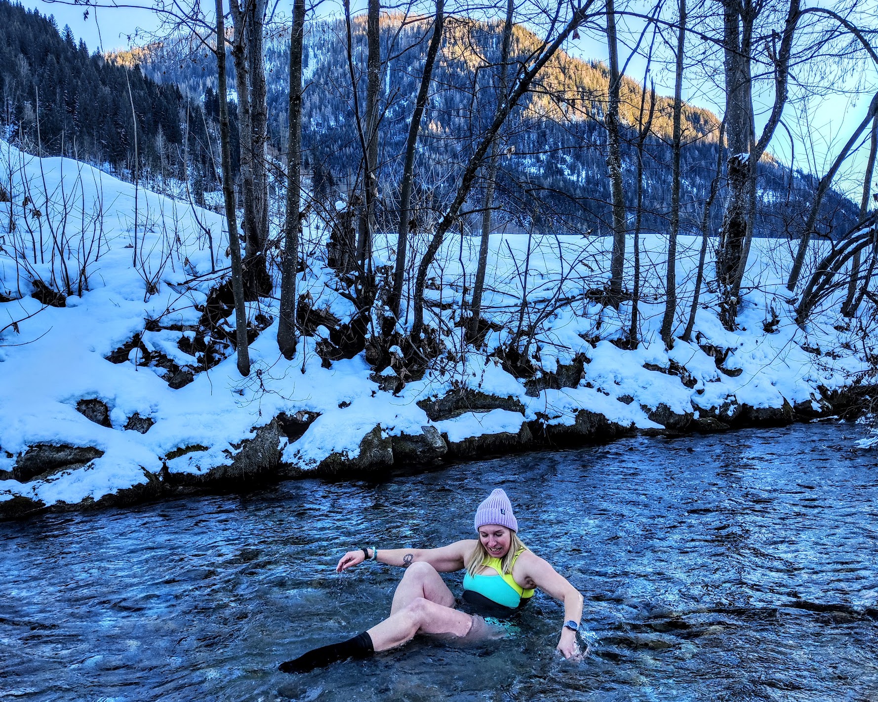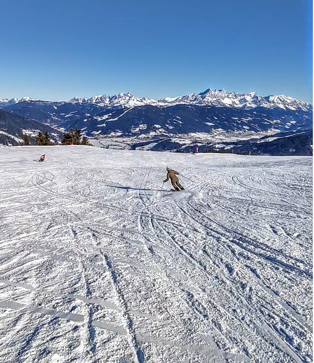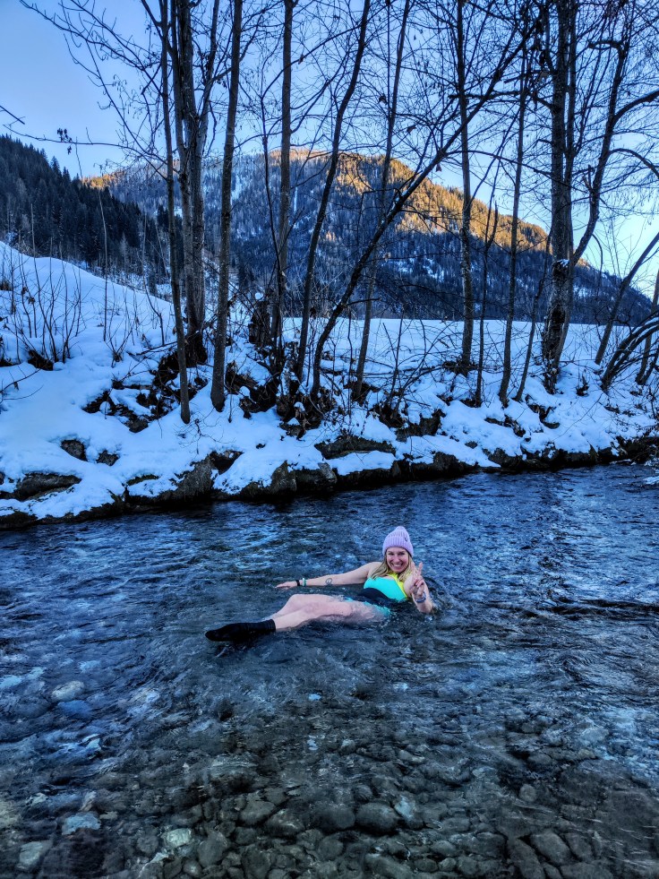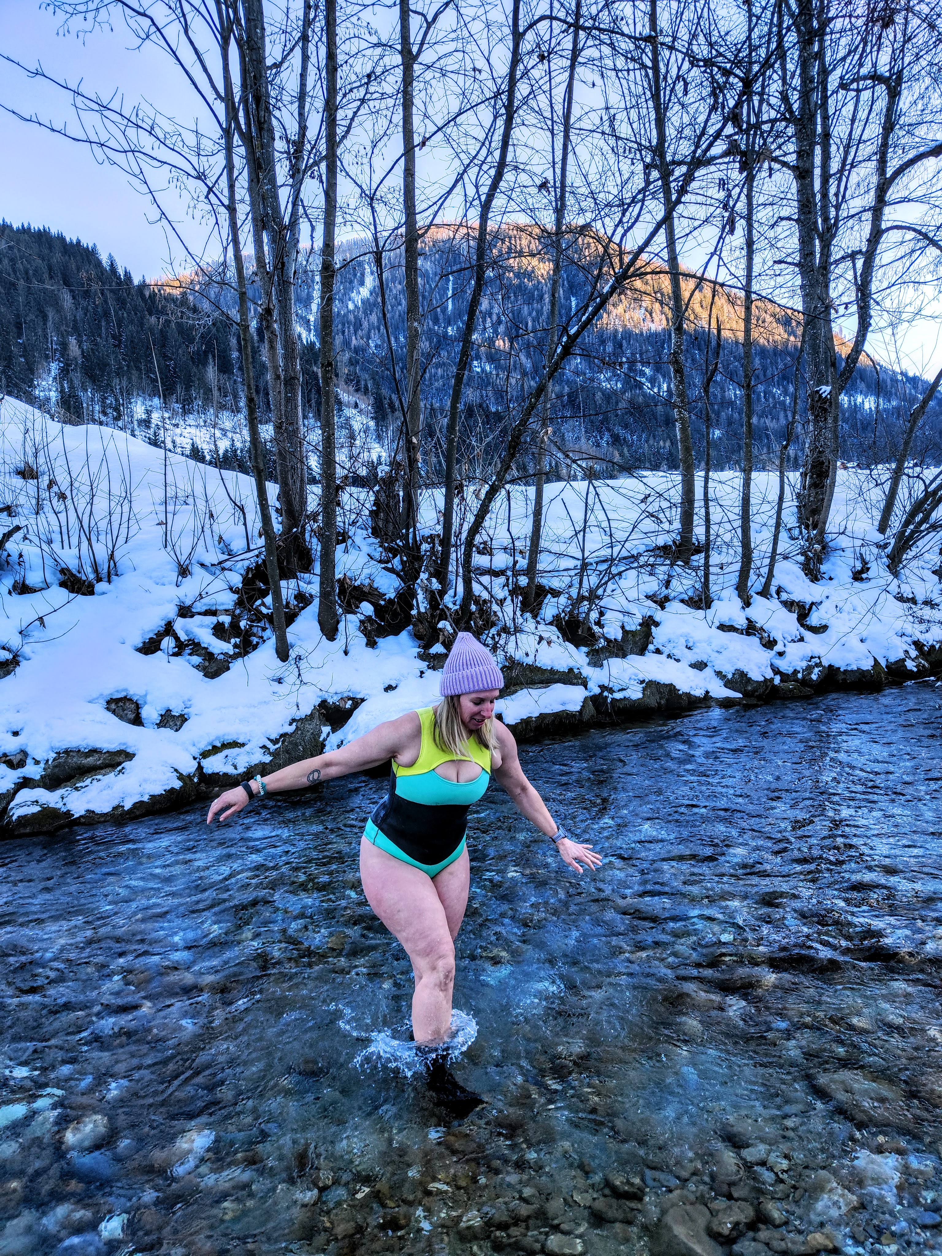 Die perfekte Winter-Base ist, wenn der gratis Skibus direkt vor der Tür wegfährt und es keine 10 Minuten zu den Einstiegen ins Skigebiet, zb zum Star- oder 8er Jet dauert. Die Skitickets gibt’s direkt – ohne langes Anstellen – an der Rezeption. Premiere 1: Skifahren im SnowSpace Ski Amadé. Zur Flachauwinkel-Langlaufloipe (mittelschwer) sind es 3 Busstationen oder 10 Minuten zu Fuß vom Dips&Drops. Die Enns hinter dem Hotel sorgt für Eisbade-Freuden – ein ganz besonderes Erlebnis. Vor allem für alle, die noch nie mit Winterbaden oder Eisschwimmen in Berührung gekommen sind – bitte das geführte Angebot mit Begleitung in Anspruch nehmen! Für mich auch eine weitere Premiere – im Fliesswasser bei gefühlten 1 Grad und eine ganz andere Nummer als zb im Hallstättersee. Zum Winterwandern gibt es eigens gespurte Wege. PS: wer selber keine Ski-Ausrüstung dabei hat, kann direkt im EG bei Fun-Pro leihen. Auch Fatbike-Tour werden angeboten – im Sommer warten dann Haibikes & Profi-Guides für Ausfahrten. Apropos Sommer, eine meiner Lieblings-Bergtouren führt vom Hotel auf den Hausberg: Grießenkareck 1991m & Saukarfunktel 2028m, Flachau