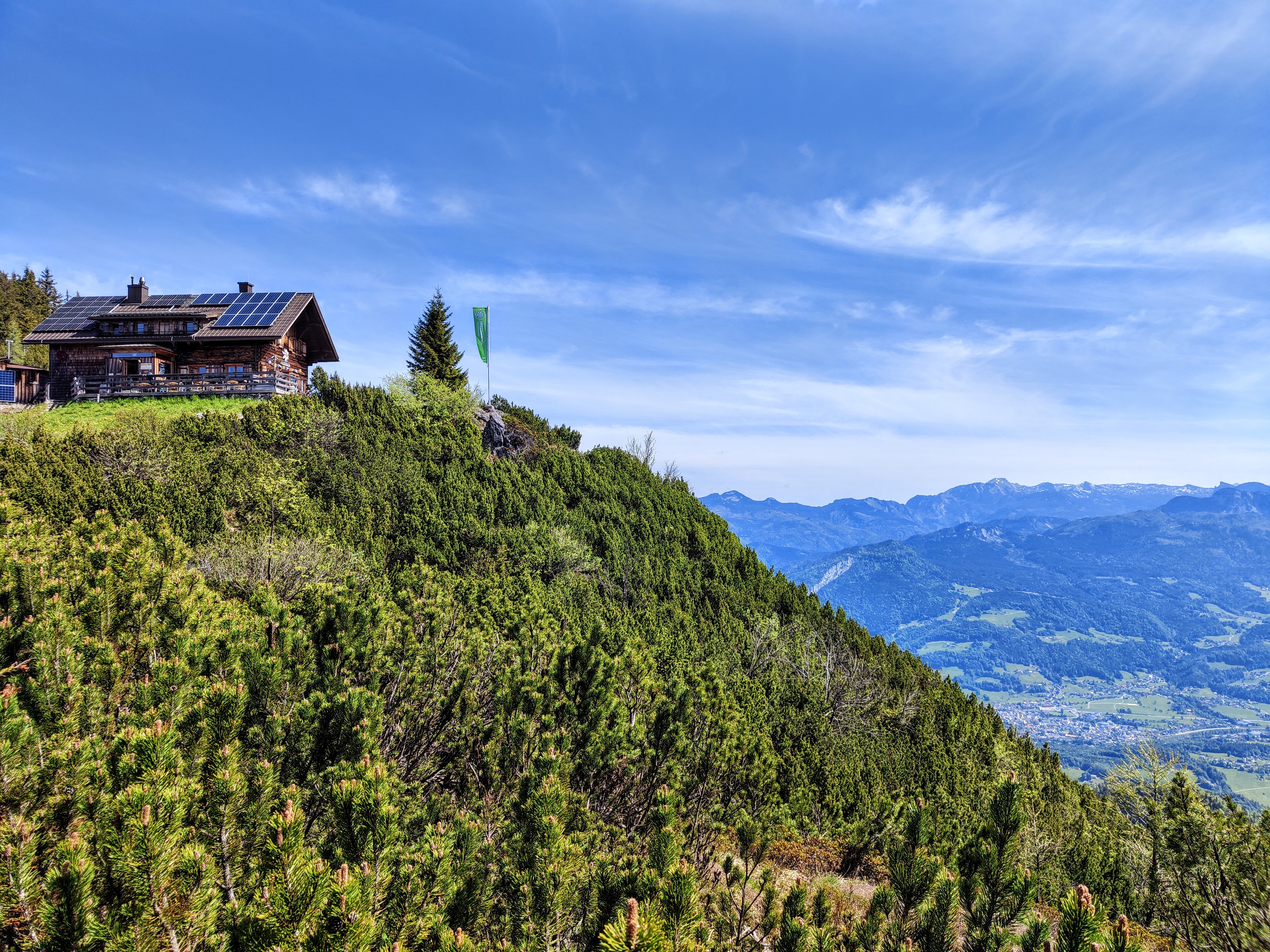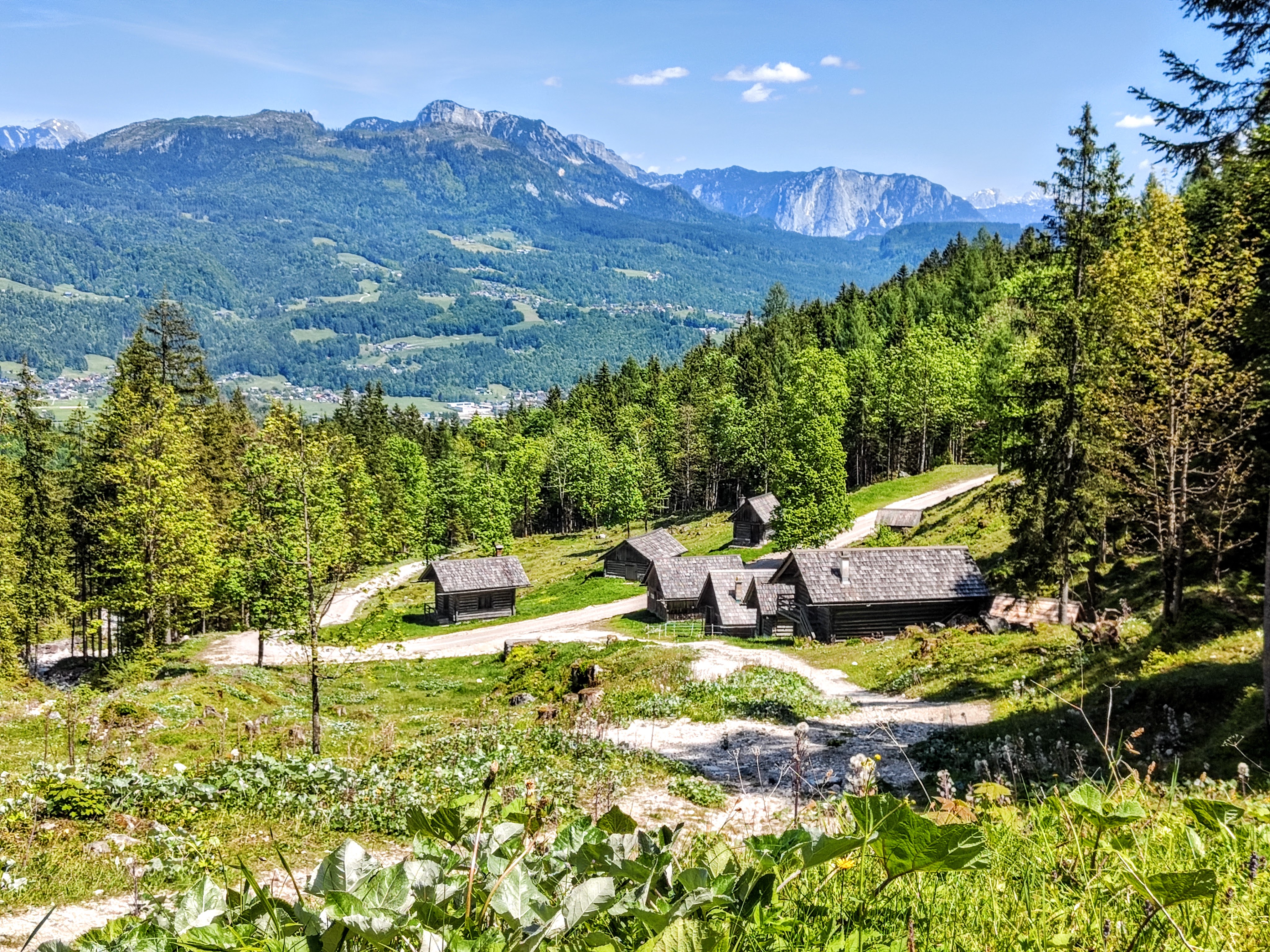 A weiteres Schmuckstück ist die Schartenalm kurz vor der Goisererhütte mit ihren privaten Almhütten. Noch waren keine Kühe oder Schafe oben, aber es wurde bereits alles für deren Almsommer vorbereitet. Ab dort kann i de Kaspressknedlsuppn scho riachn – und schmecken… Geschmackshalluzination wsl. Die Goisererhütte thront auf 1592m am Sattel zw Sonnwendkogel und Hohem Kalmberg 1833m über Goisern… Wer a Gipfelkreuz mitnehmen mag – da Indianer wartet! Eine knappe Stunde sollte man rechnen, plus 220hm.