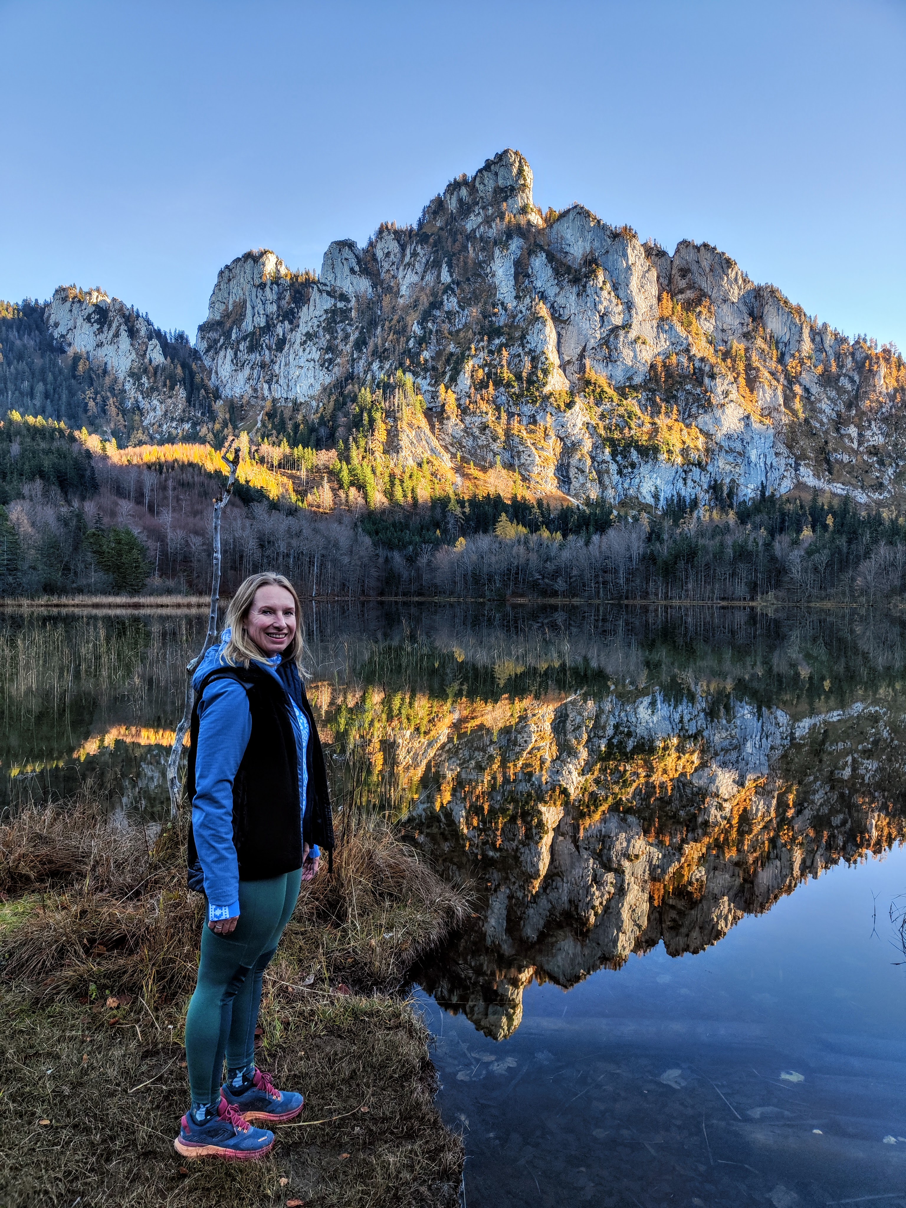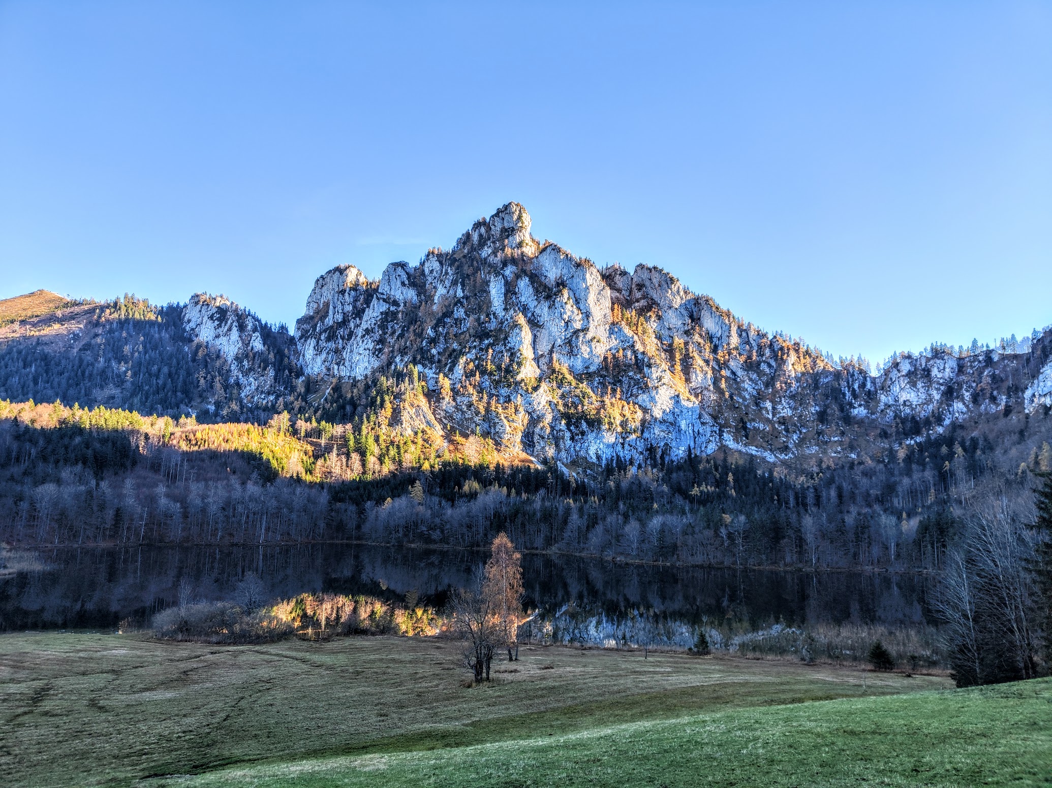 Spieglein, Spieglein… Ist ER der schönste Bergsee im Land (OÖ)? Ganz eine besondere (Licht)Stimmung erwischt im Naturschutzgebiet, während der Katzenstein sich noch sonnt und alle anderen vor Ort schon frösteln. Es ist nicht mein erster Besuch dort, aber der erste vom Grünberg aus. Diese Variante ist knieschonend und auch als Reha-Spazierer perfekt. Bleibt man auf der Forststrasse, ist es barrierefrei bzw mit Kinderwagen möglich.