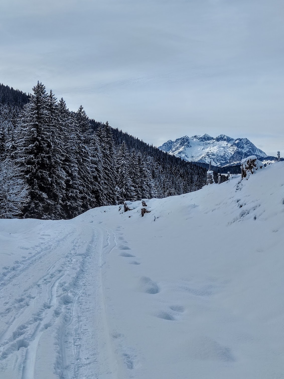 Perfekte Konditionen zum starten meiner Langlaufsaison am 6. Januar 2026 – gefunden im Neubachtal, einem ruhigen Seitental in Lungötz. Ein weisser Fleck auf meiner Karte – dort war ich auch noch nie. Ab auf die Loipe Neubach, die mich tief in den ruhigen Talschluss bringt – Blick zur markanten Bischofsmütze im Gosaukamm inklusive!