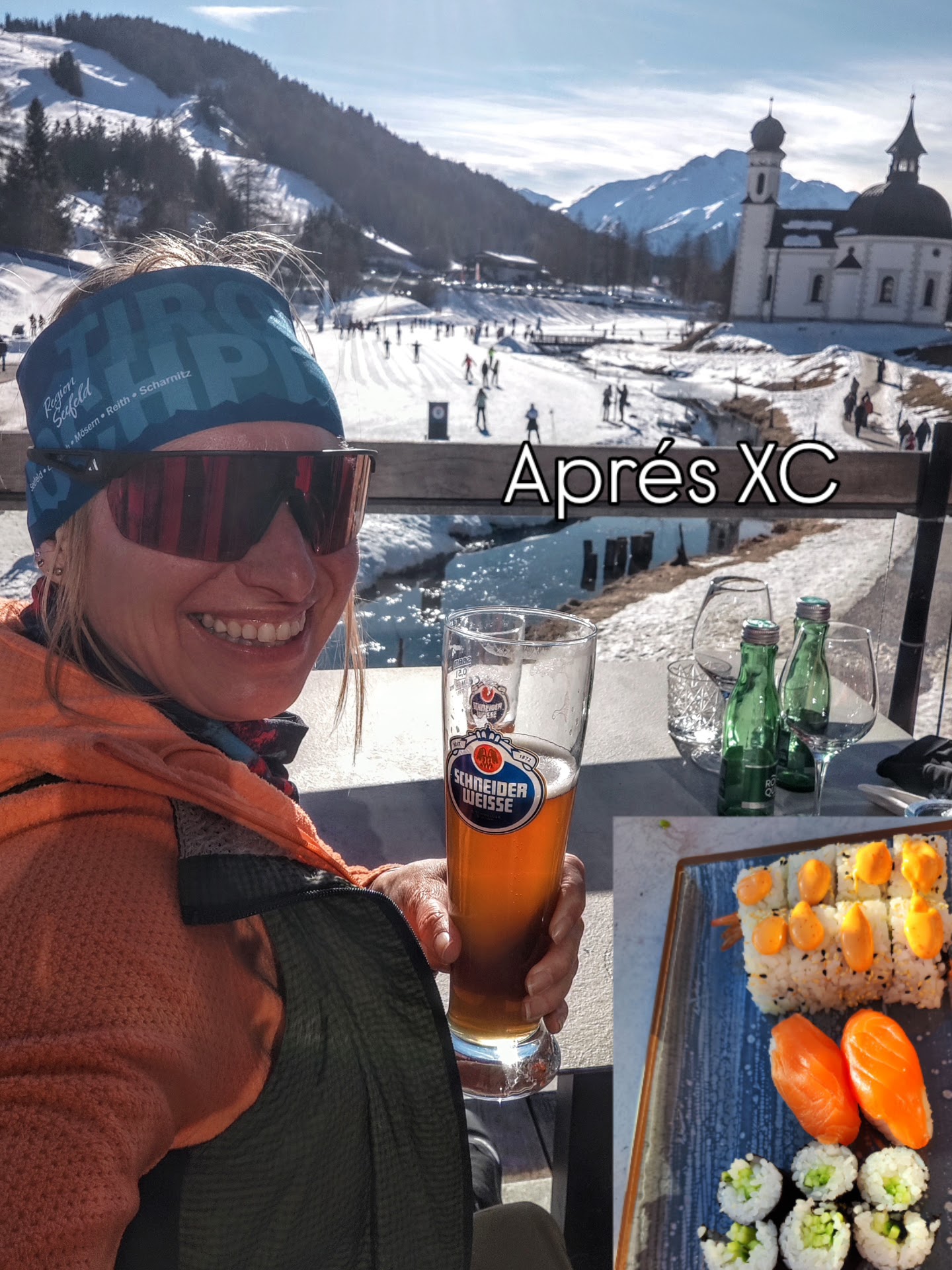 Wer langlaufen geht, muss natürlich auch die Speicher auffüllen – auf der sonnigen Terrasse des Woods Seefeld direkt neben der Techniktrainingsstrecke am Seekirchl gibts zum isotonischen Weizen seit langem mal wieder Sushi, eine schöne Abwechslung. Super gute Suppenklassiker hat das Gasthaus Batzenhäusl in der Fußgängerzone und im Zeitlos sollen die Pizzas hervorragend sein (leider keine Zeit gehabt zum testen – liegt zwischen Woods & Batzenhäusl).