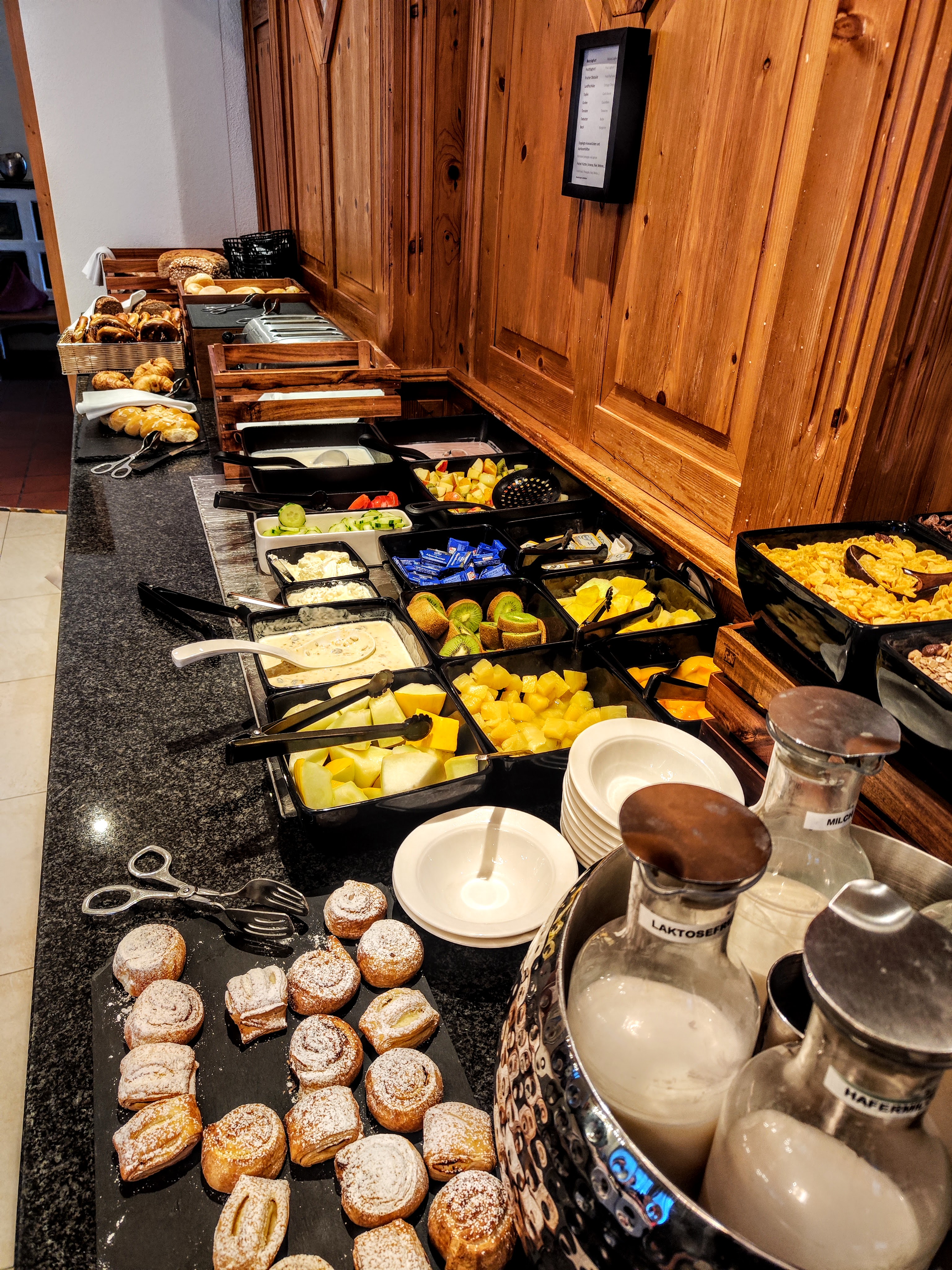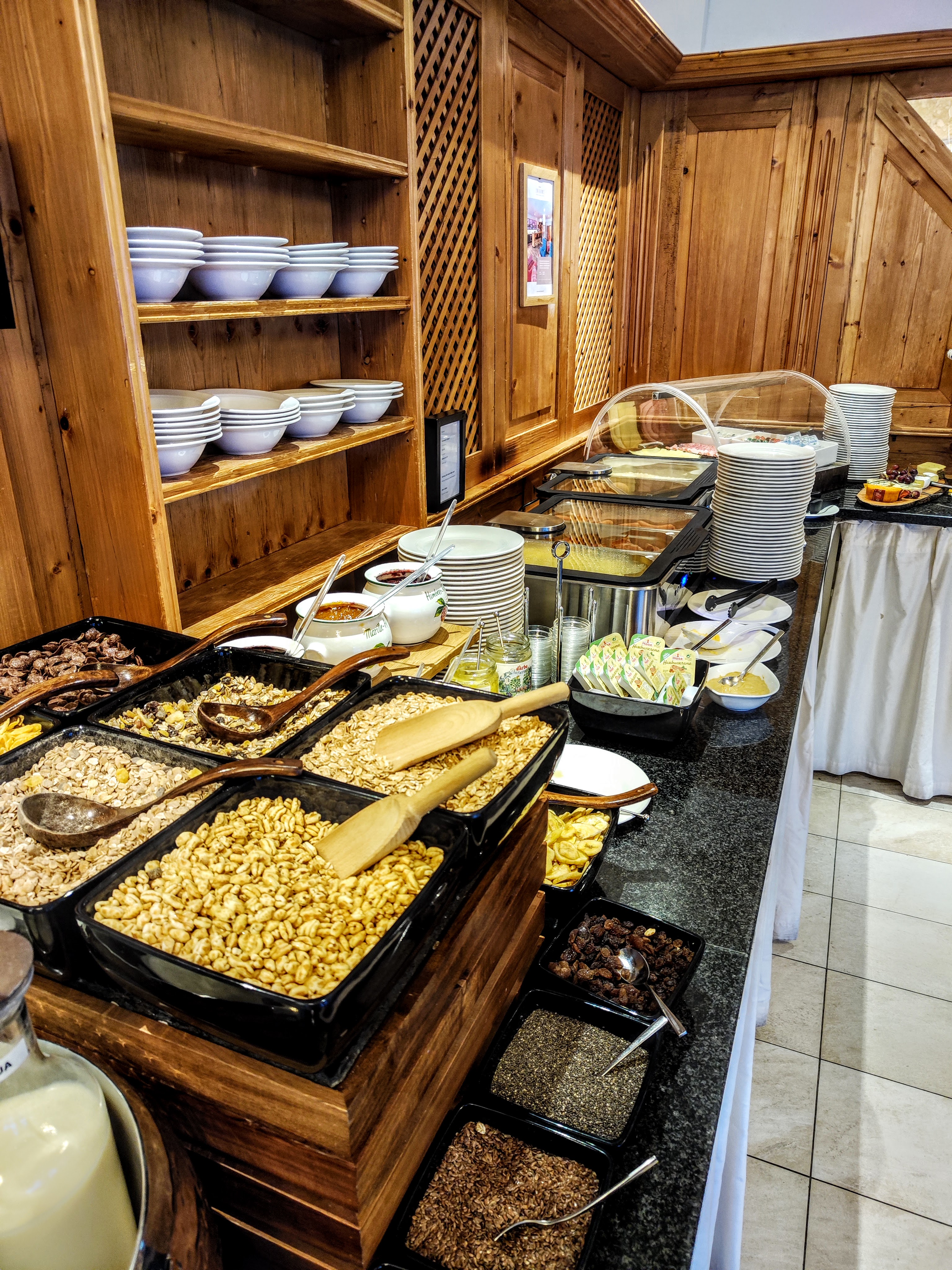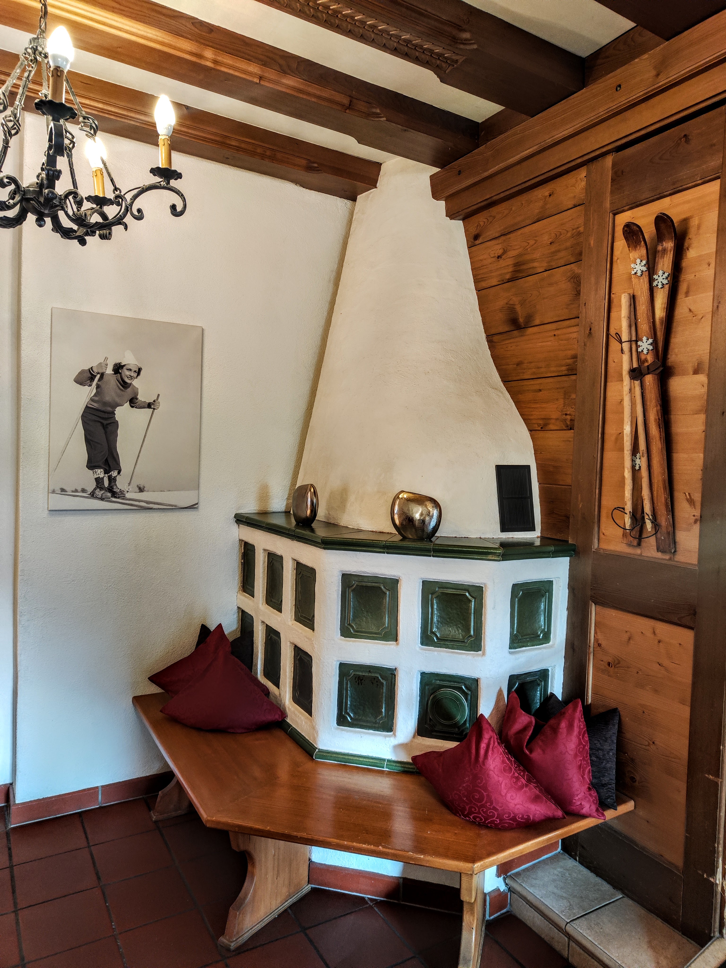 Der Name ist Programm – fein essen, gut schlafen und ruhig gelegen ist das 4 Sterne All Inclusive Hotel (Hunde sind auch willkommen). Zum Loipeneinstieg am Seekirchl ist es ein schöner kleiner Spazierer (max 15 Minuten Gehzeit), eine kleine Abkürzung beim Geigenbühellift vorbei gibt’s auch. Den braucht man ehrlich gesagt auch – riesen Frühstücksauswahl, Nachmittags-Kuchenbüffet, 4 Gang Abendmenü (Fleisch/Fisch/Vegetarische Option)… zur Mittagssuppe nie retour geschafft. Was ich auch zeitlich leider nicht geschafft habe – den Saunabereich zu inspizieren. Aber meine Begleitung dafür und dann kam dann umso entspannter zurück. Apropos entspannt – der Blick vom Bett über den kleinen Balkon zur Hohen Munde am Morgen war so schön! Ein Highlight für mich: die alten Wintersport-Fotos an den Wänden und die kleinen Sitzecken überall im Hotel. Fein war’s!